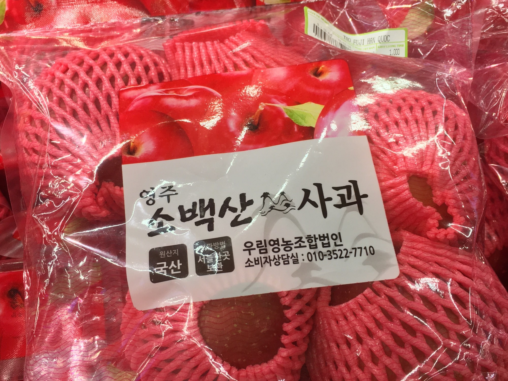 Táo Fuji Hàn Quốc thường được đóng gói trong các túi riêng biệt